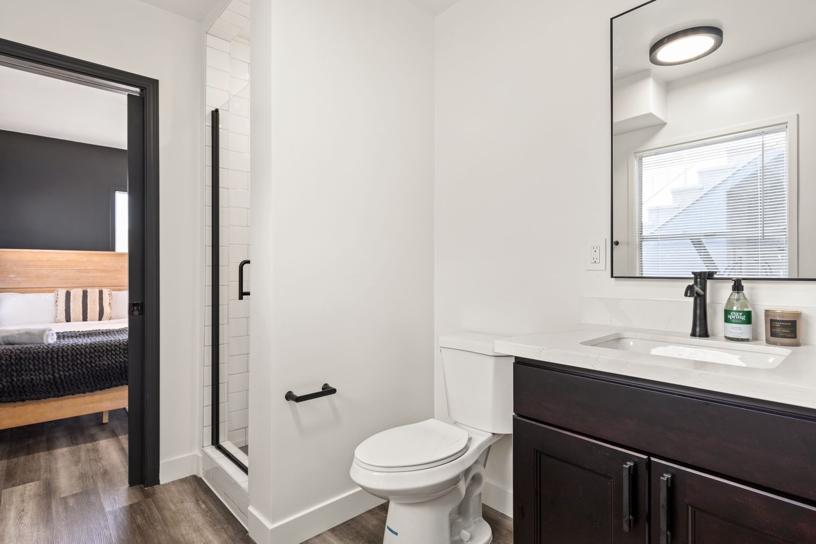 • A 91 sq ft private room with wood flooring and jack and jill bathroom.