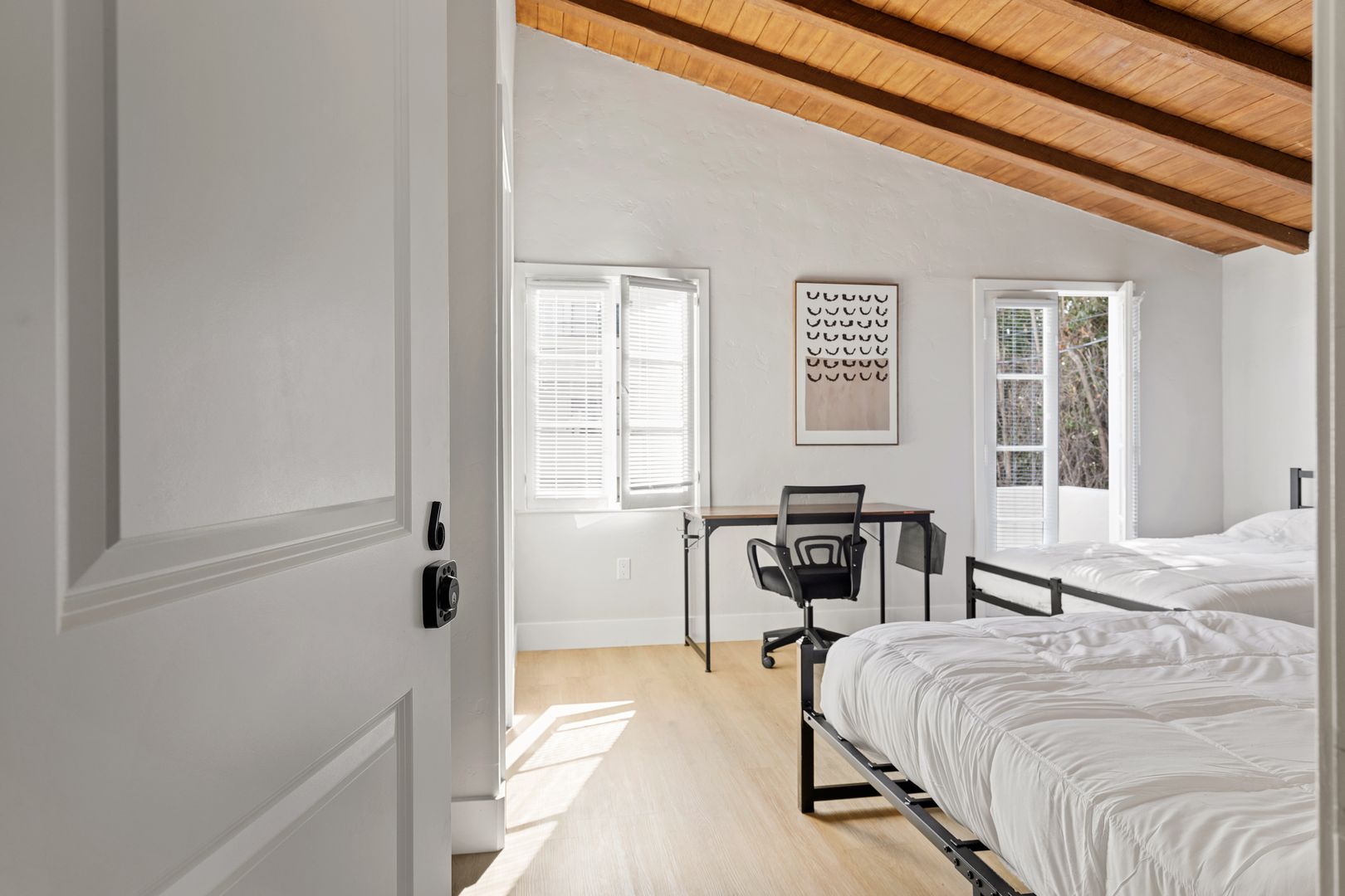 • A 189 sq ft twin/shared room with wood flooring, balcony and common ensuite bathroom.