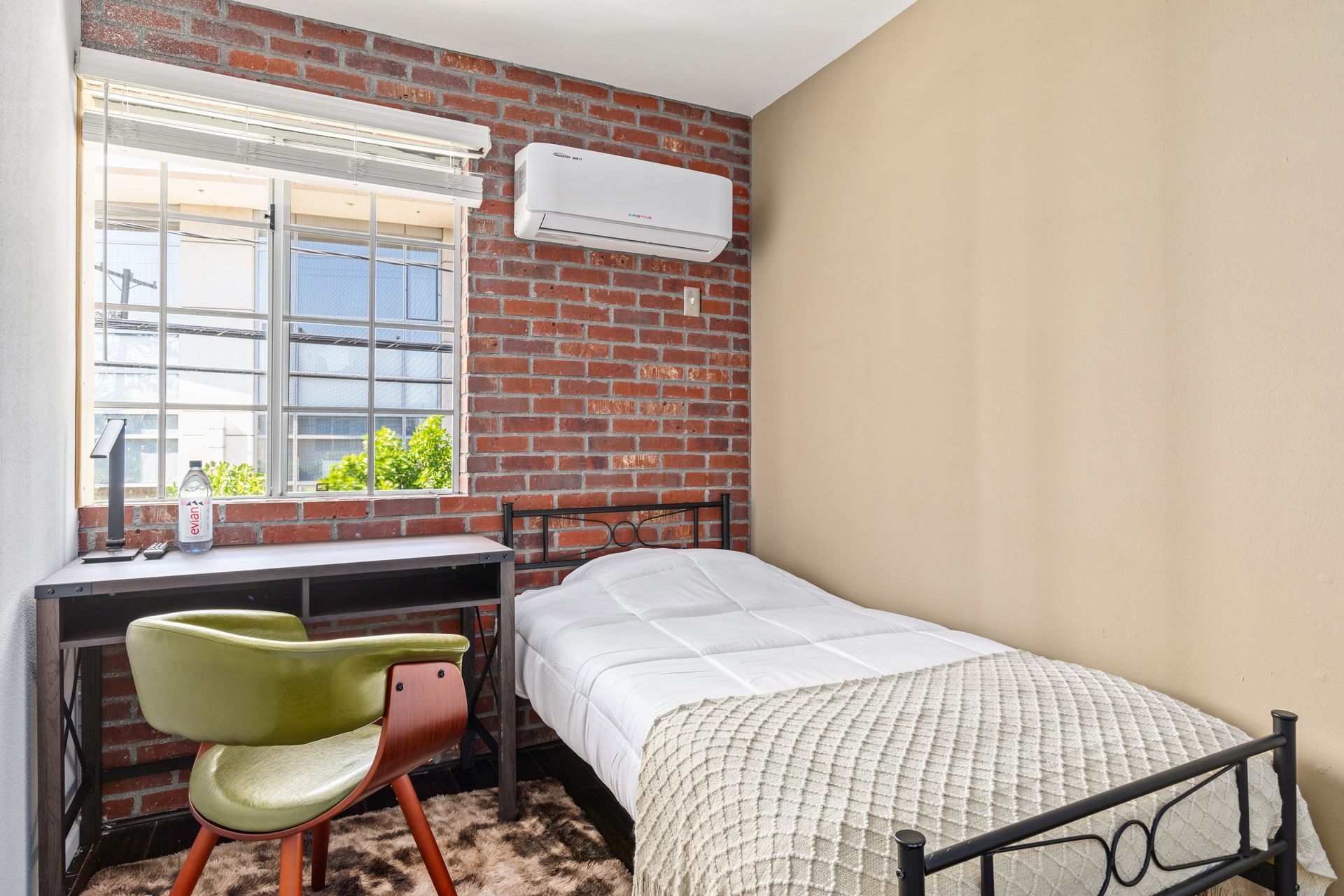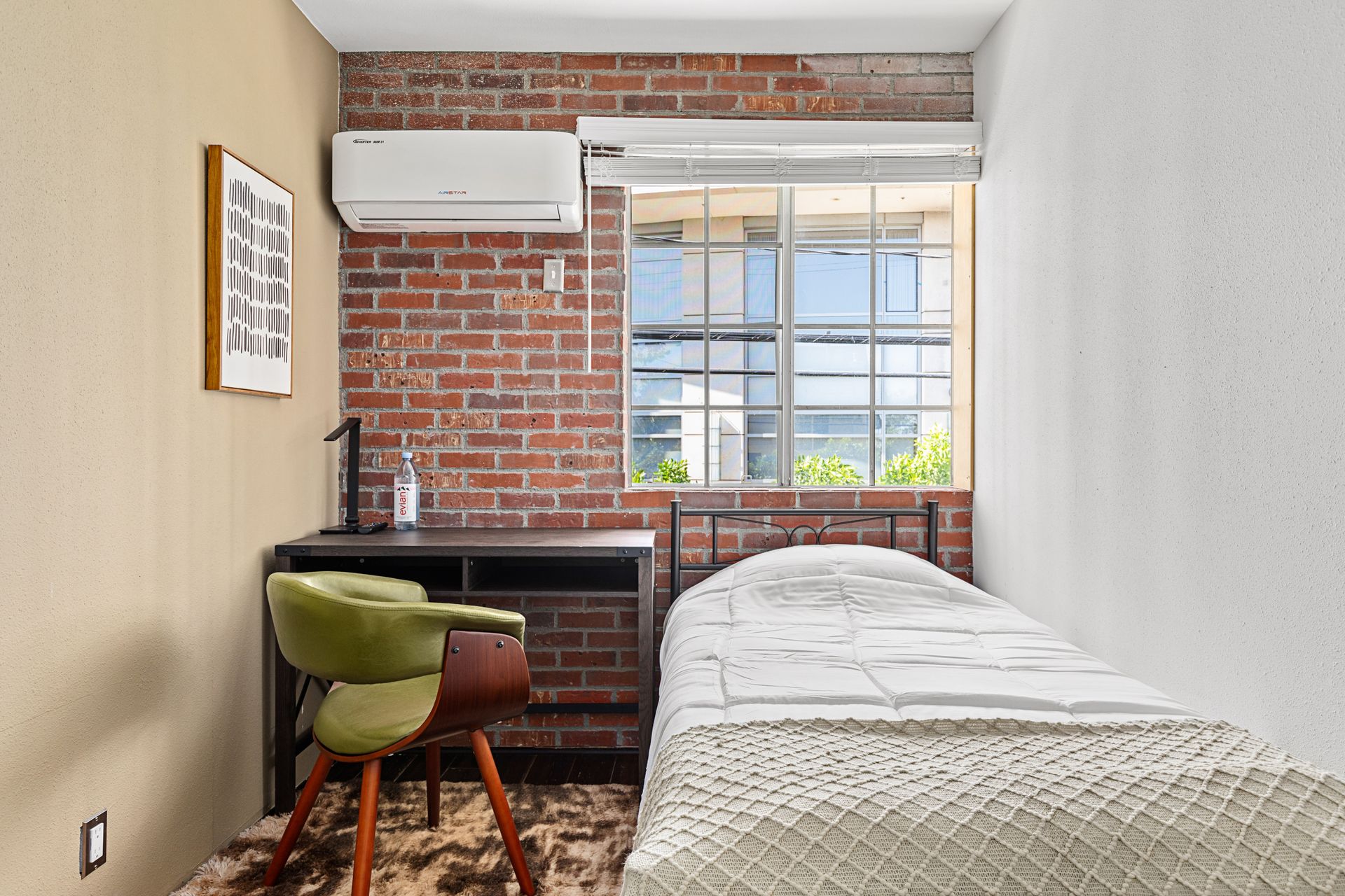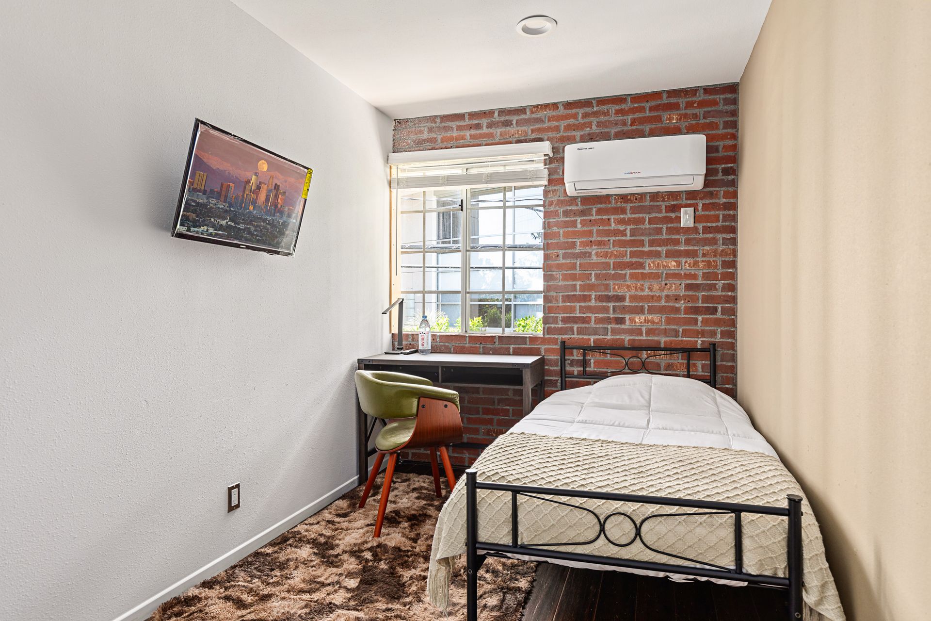 • Includes a full size bed, desk and closet.