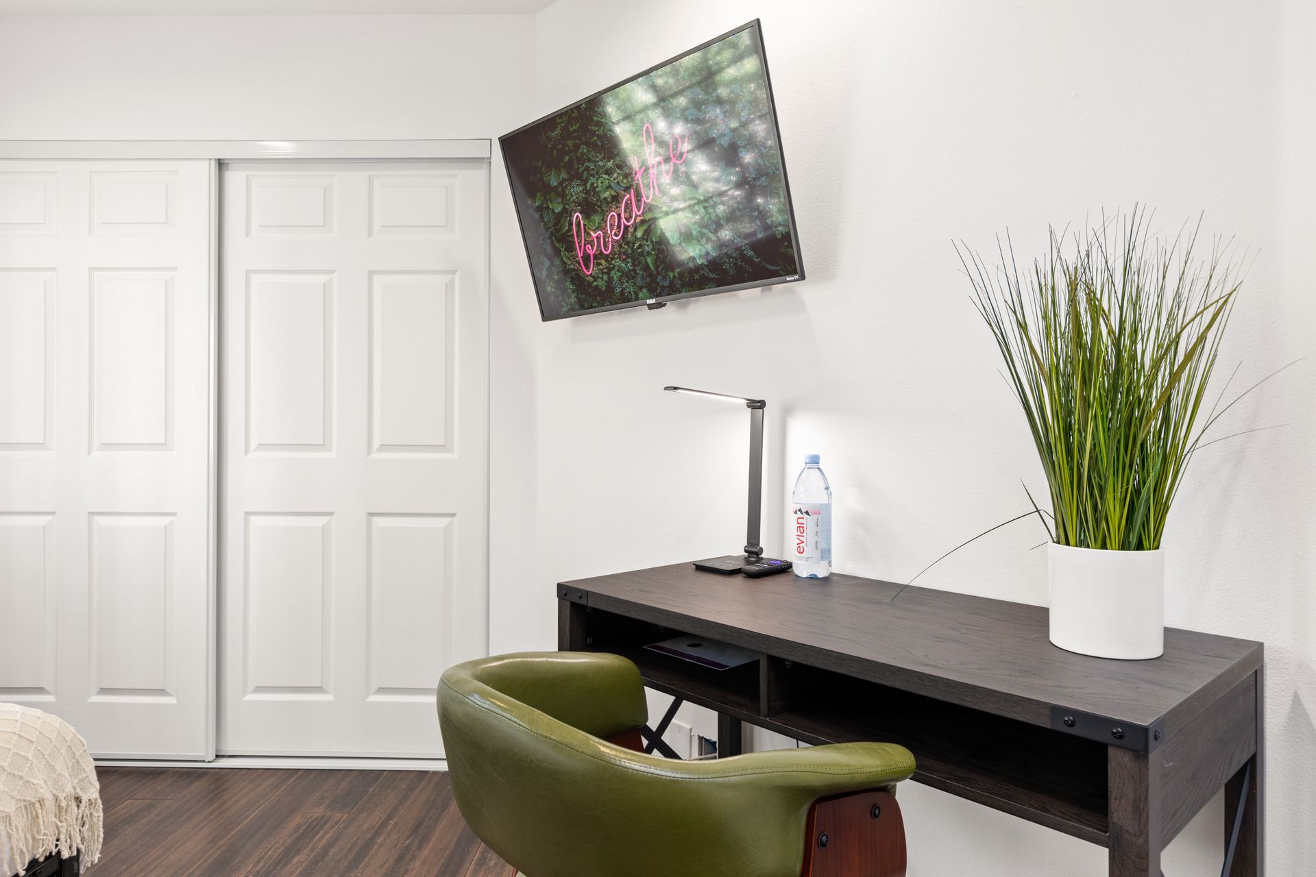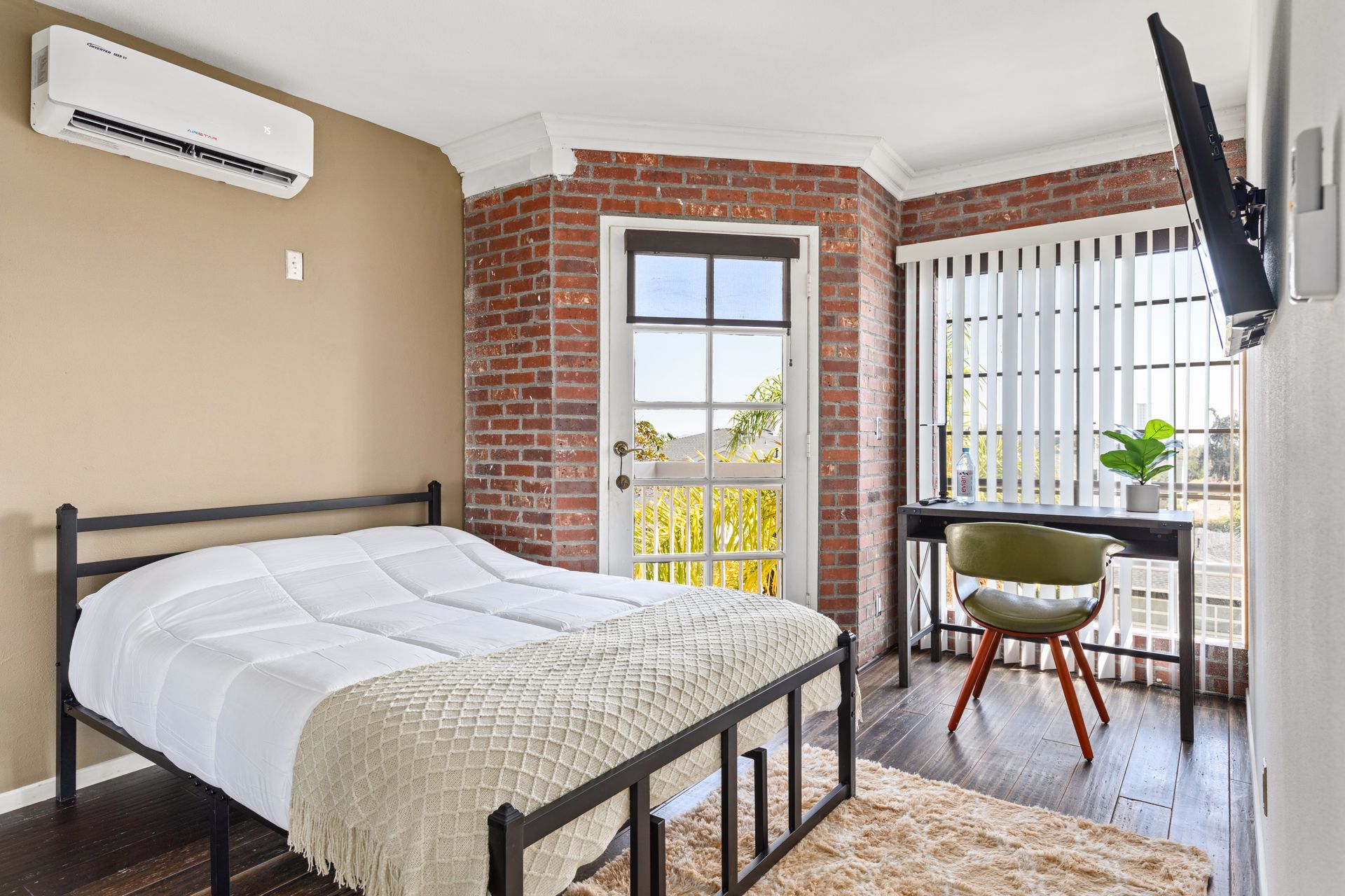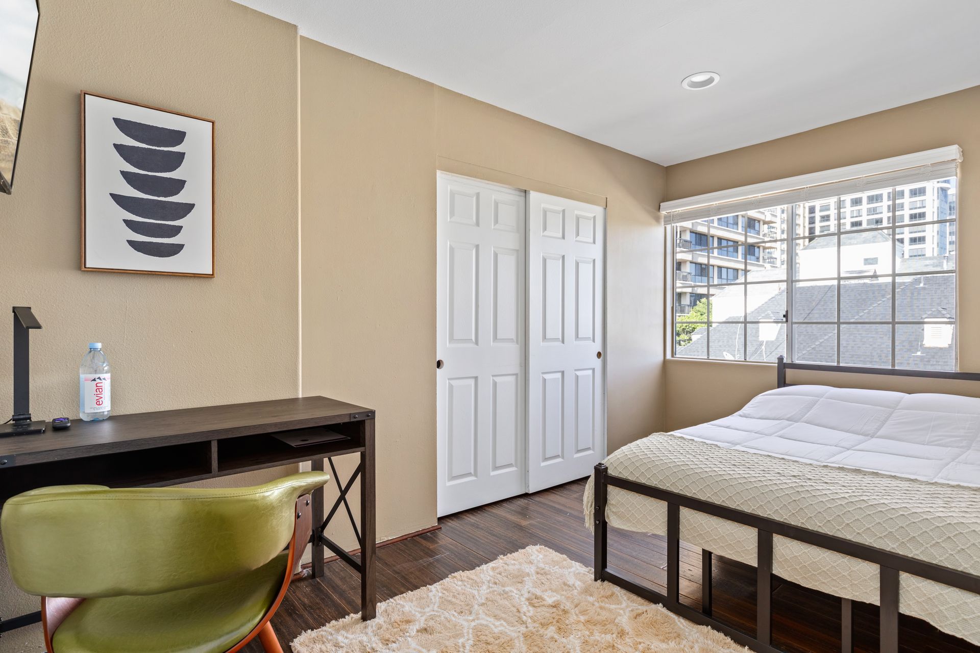 • Includes a full size bed, desk and closet.
