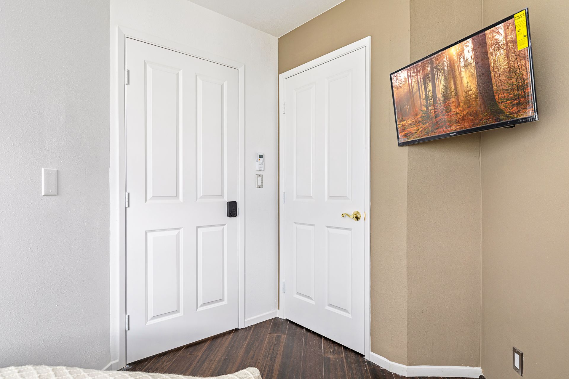 • A 130 sq ft private room with wood flooring and a common bathroom.