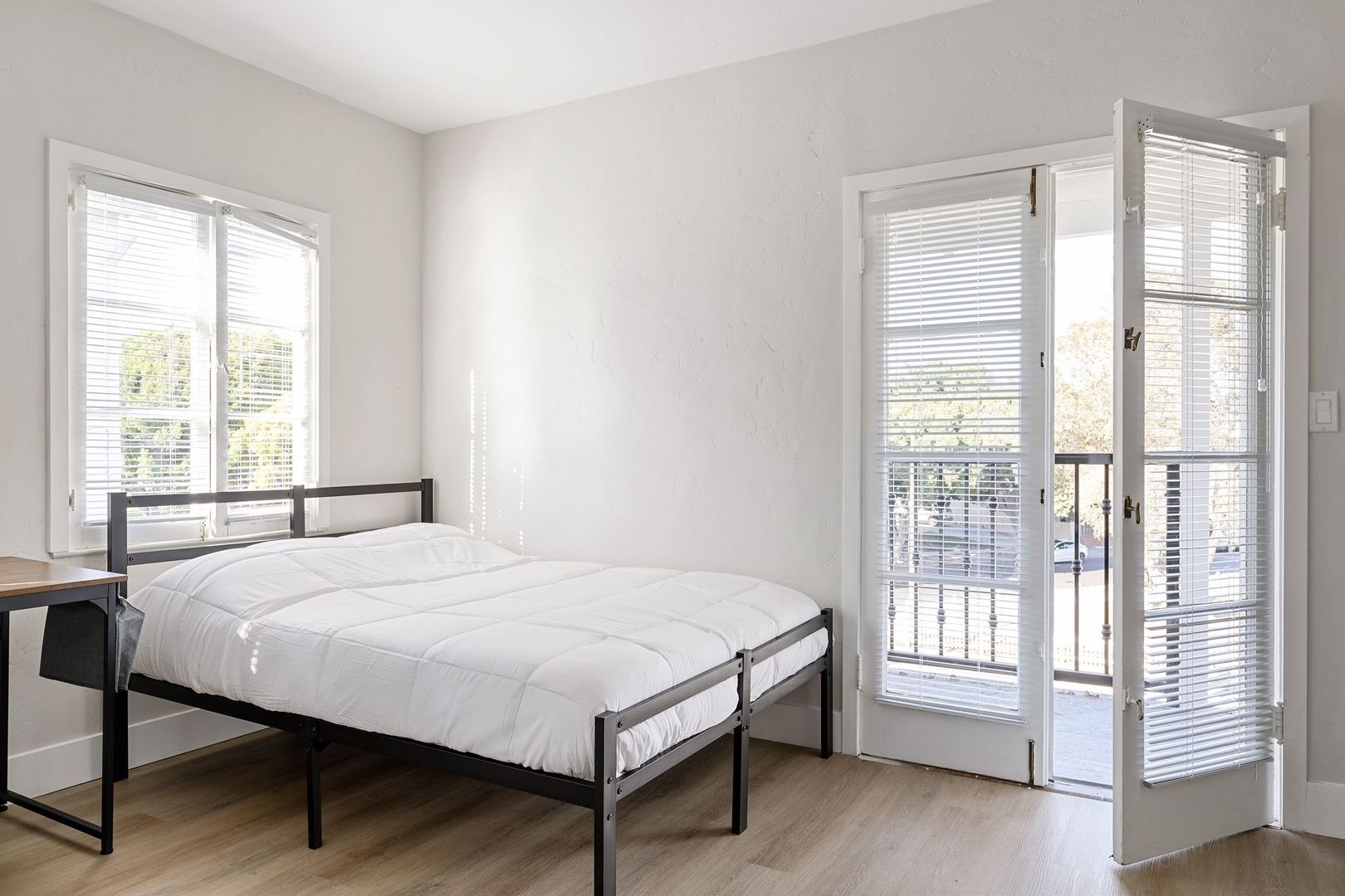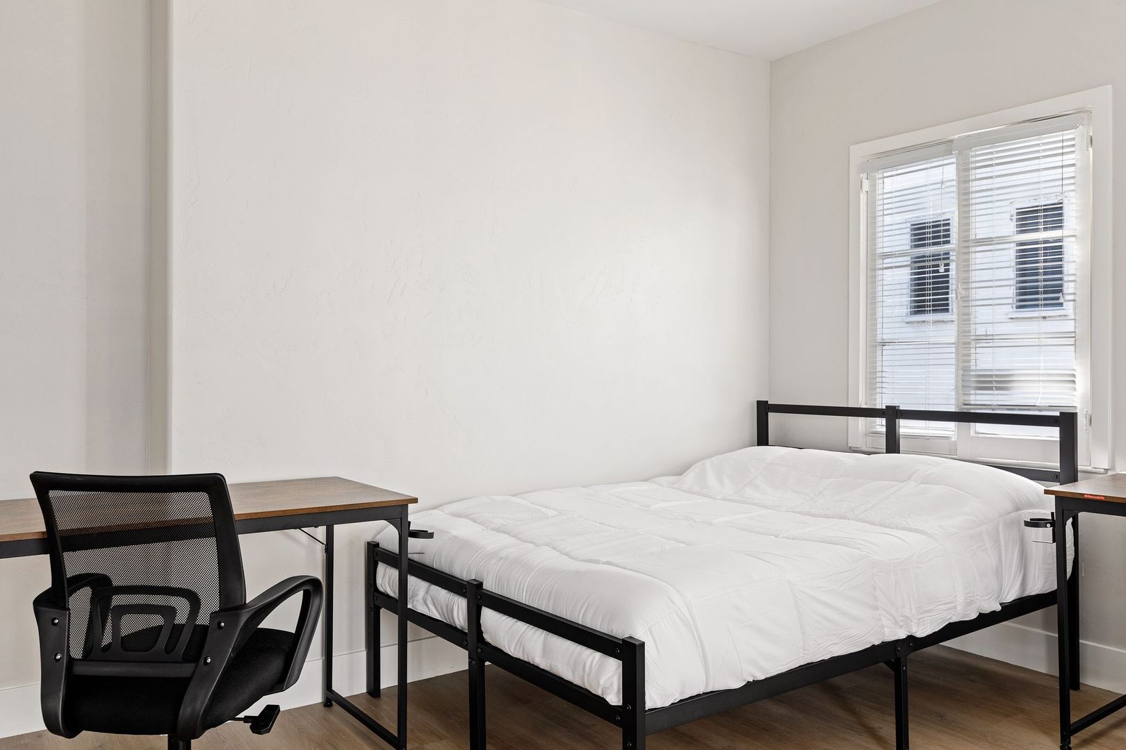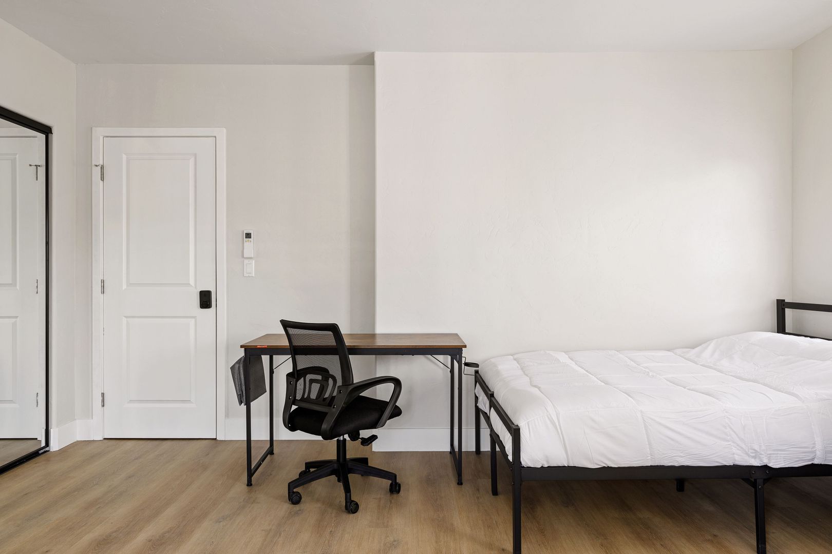 • Includes a full size bed, desk and closet.