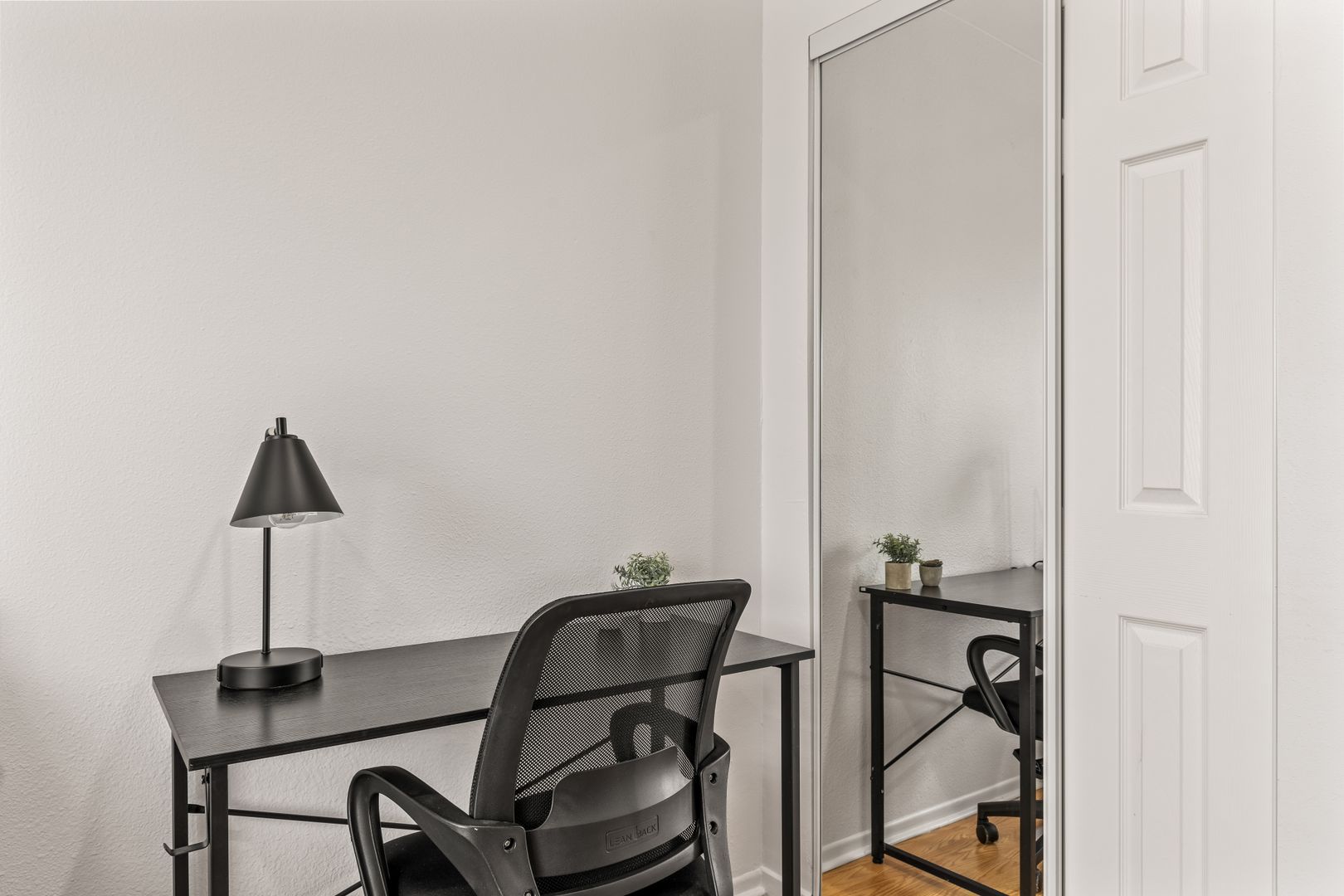 • Includes a full-sized bed, desk and closet.