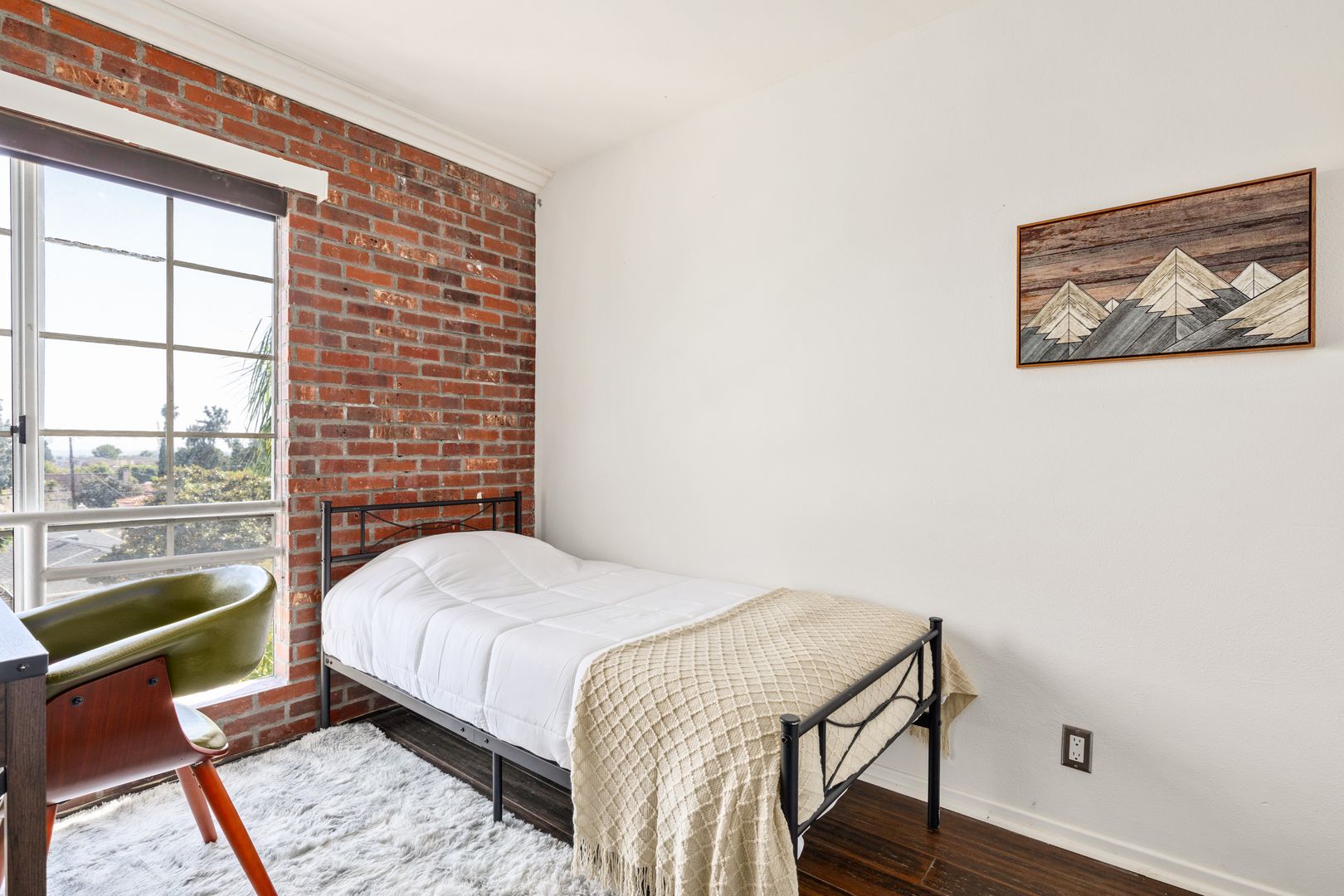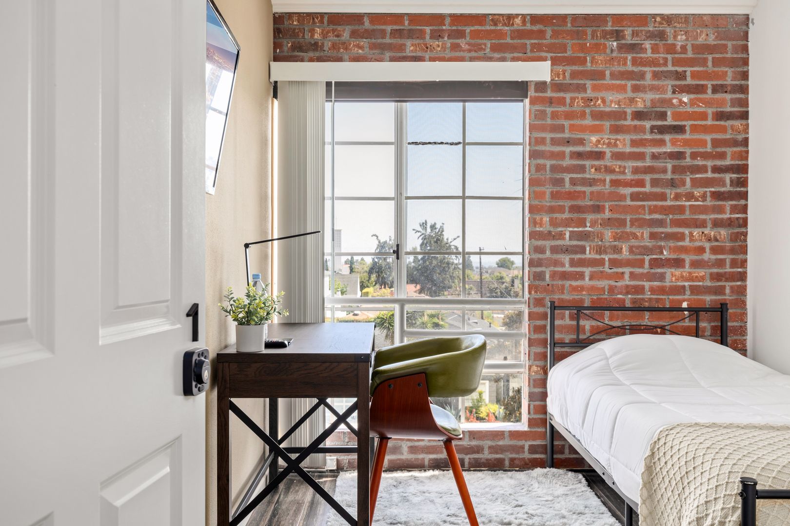 • Includes a twin size bed, desk and closet.
