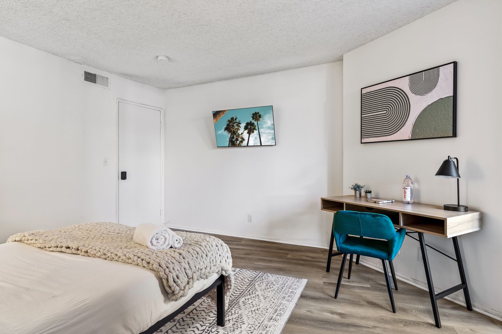 • Includes a full size bed, desk and closet.