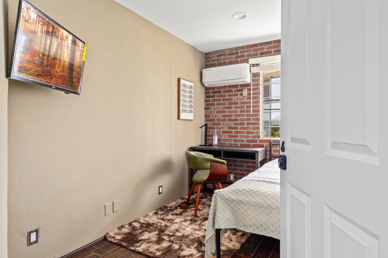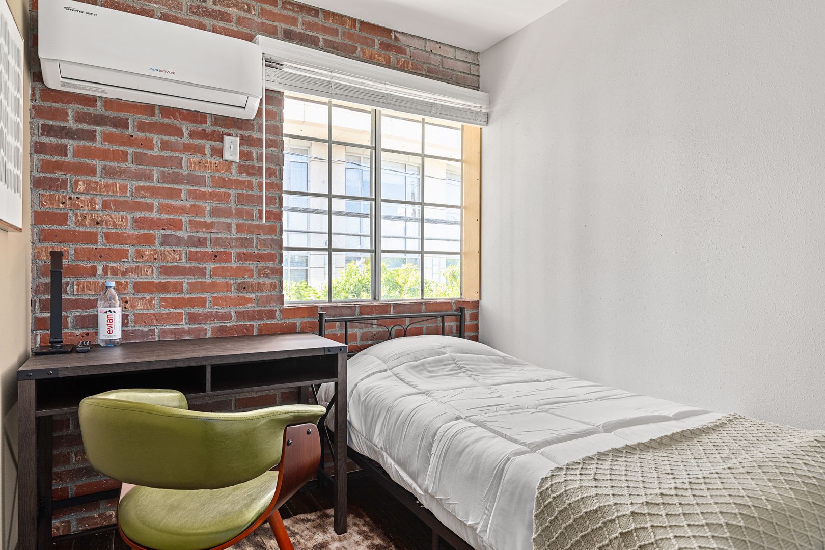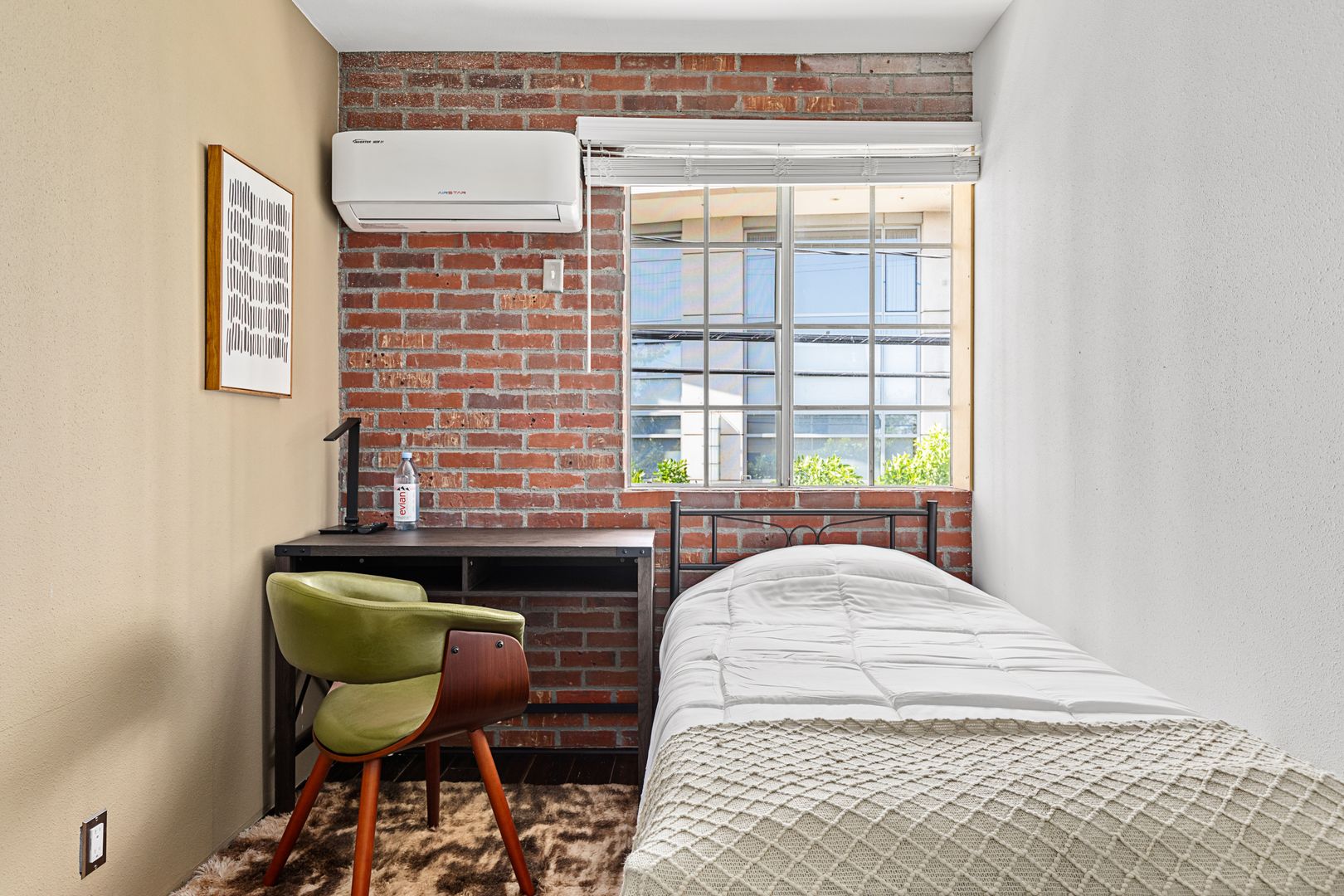 • Includes a twin size bed, desk and closet.