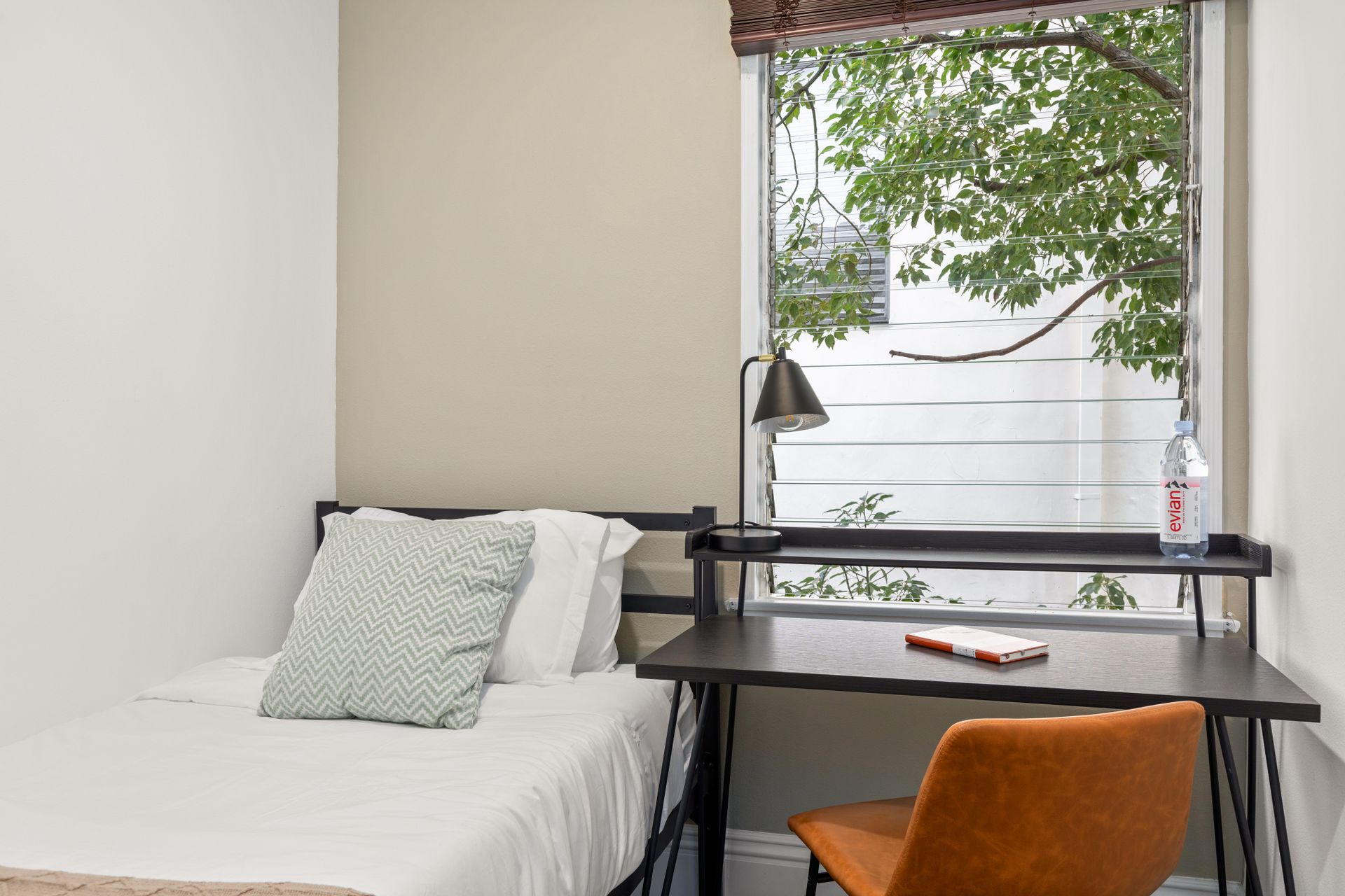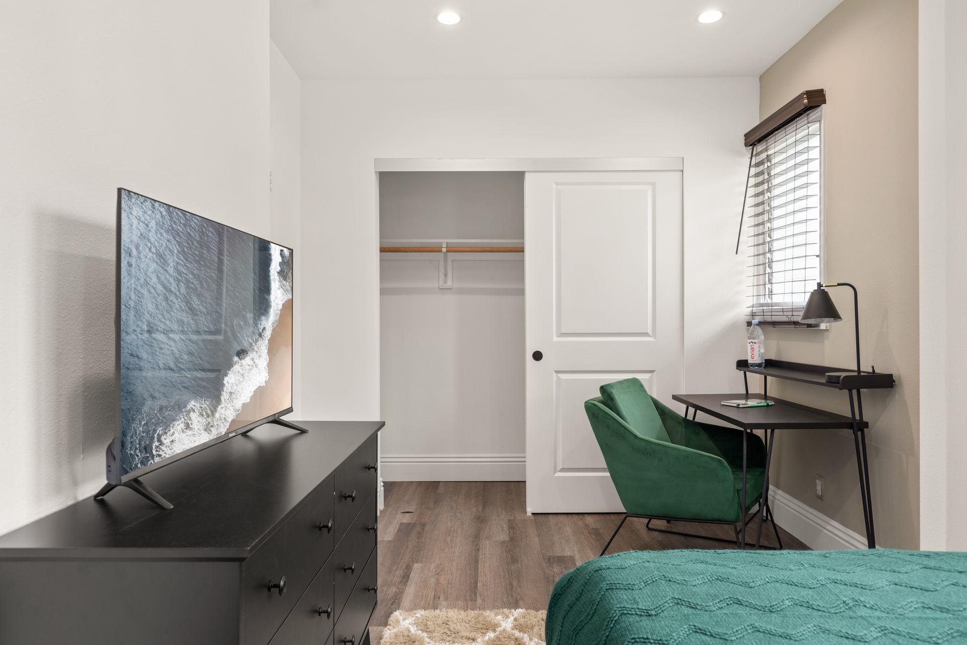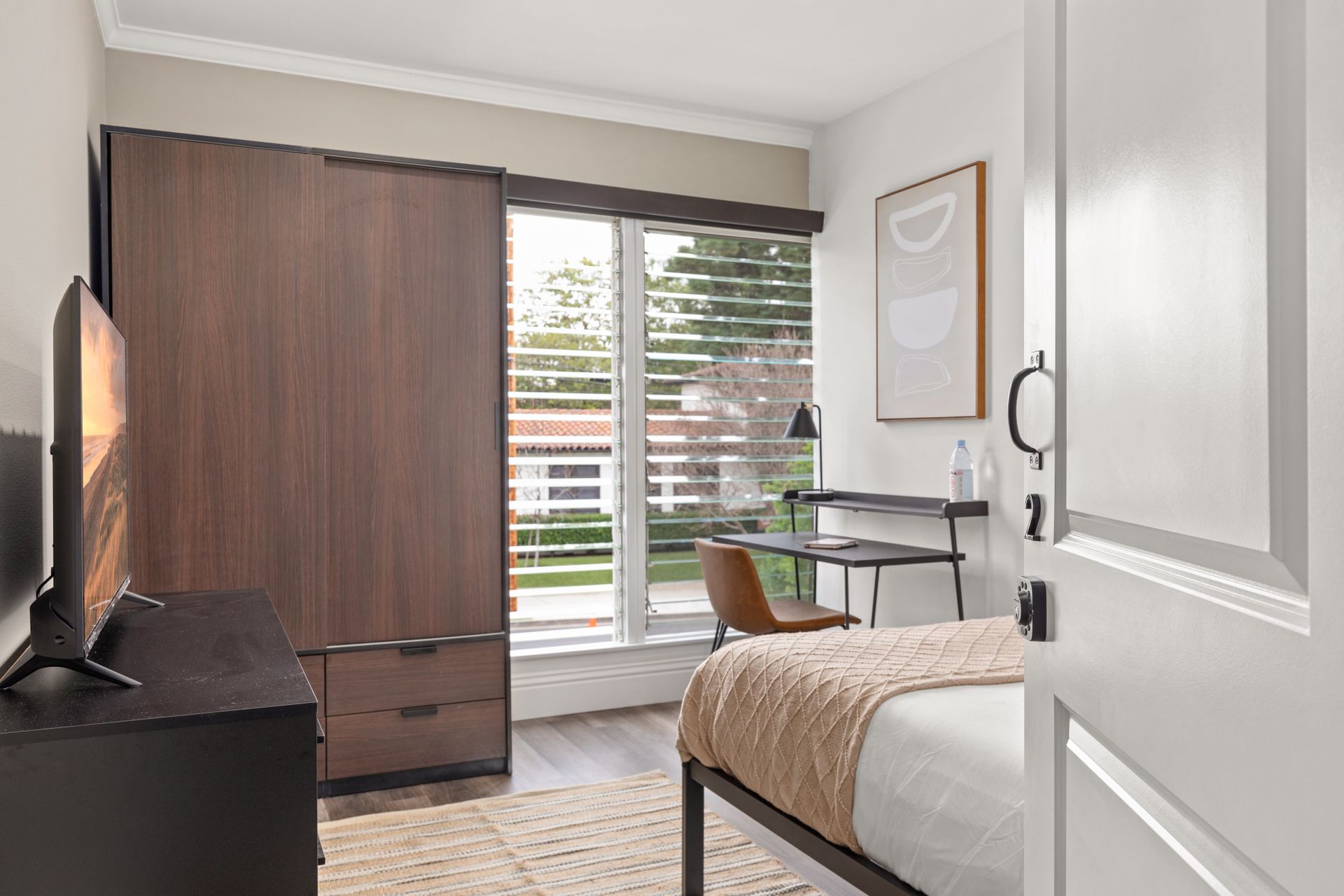 • Includes a full size bed, desk and closet.