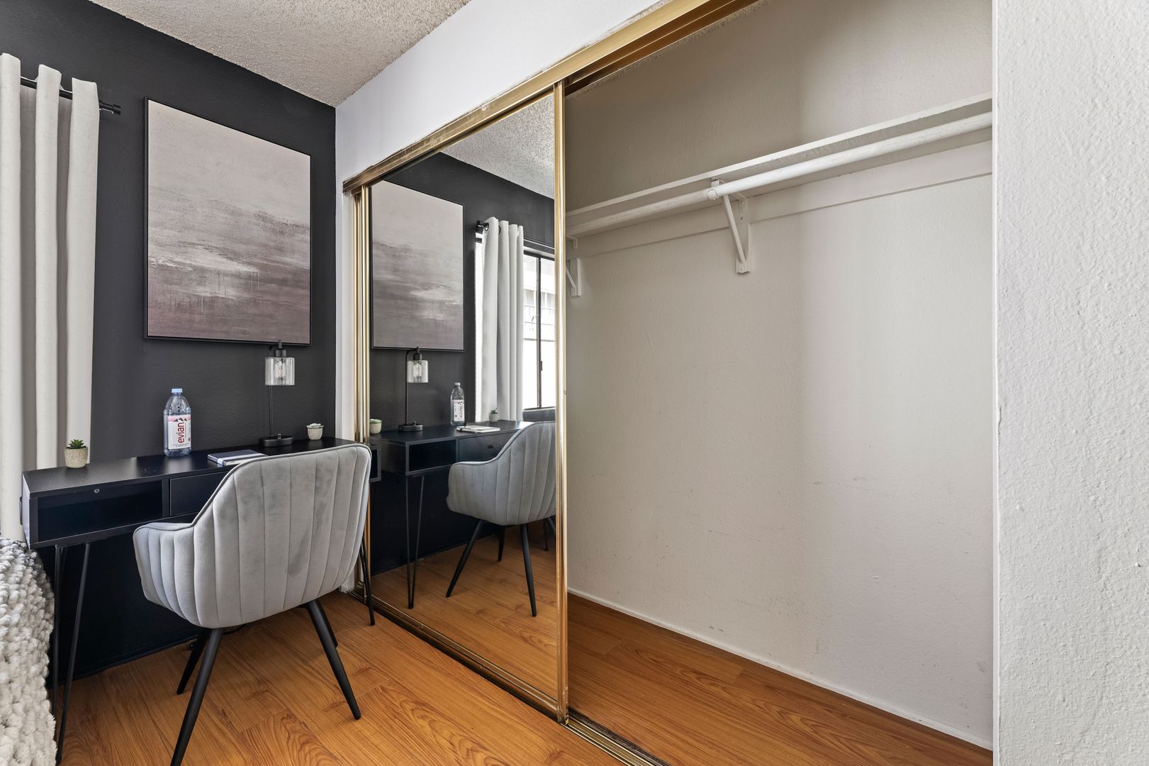 • Includes a twin size bed, regular closet, and desk.