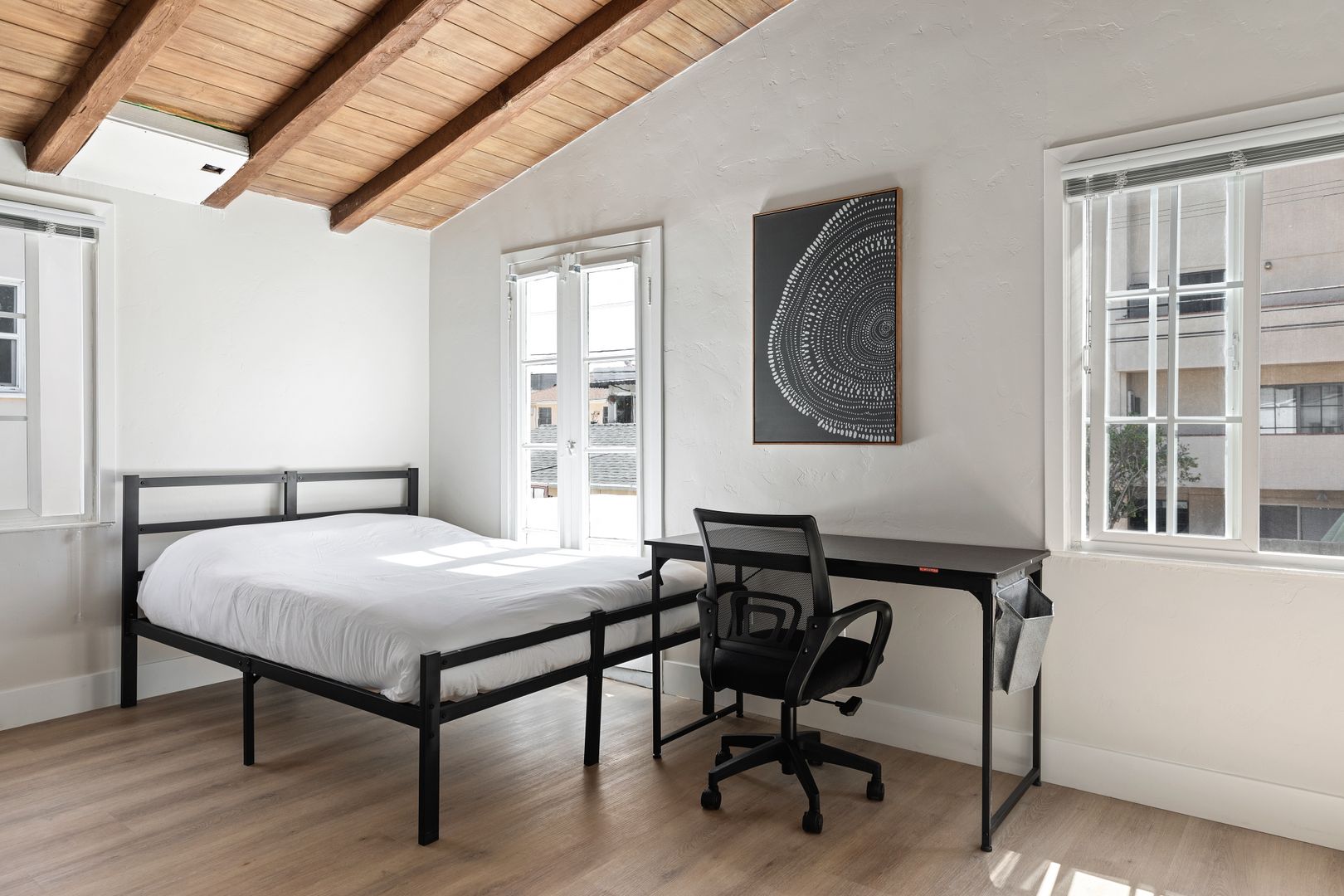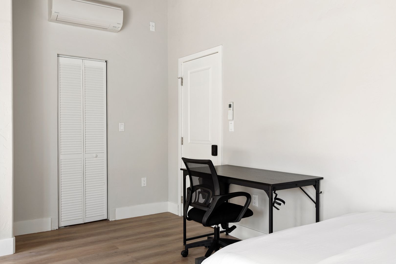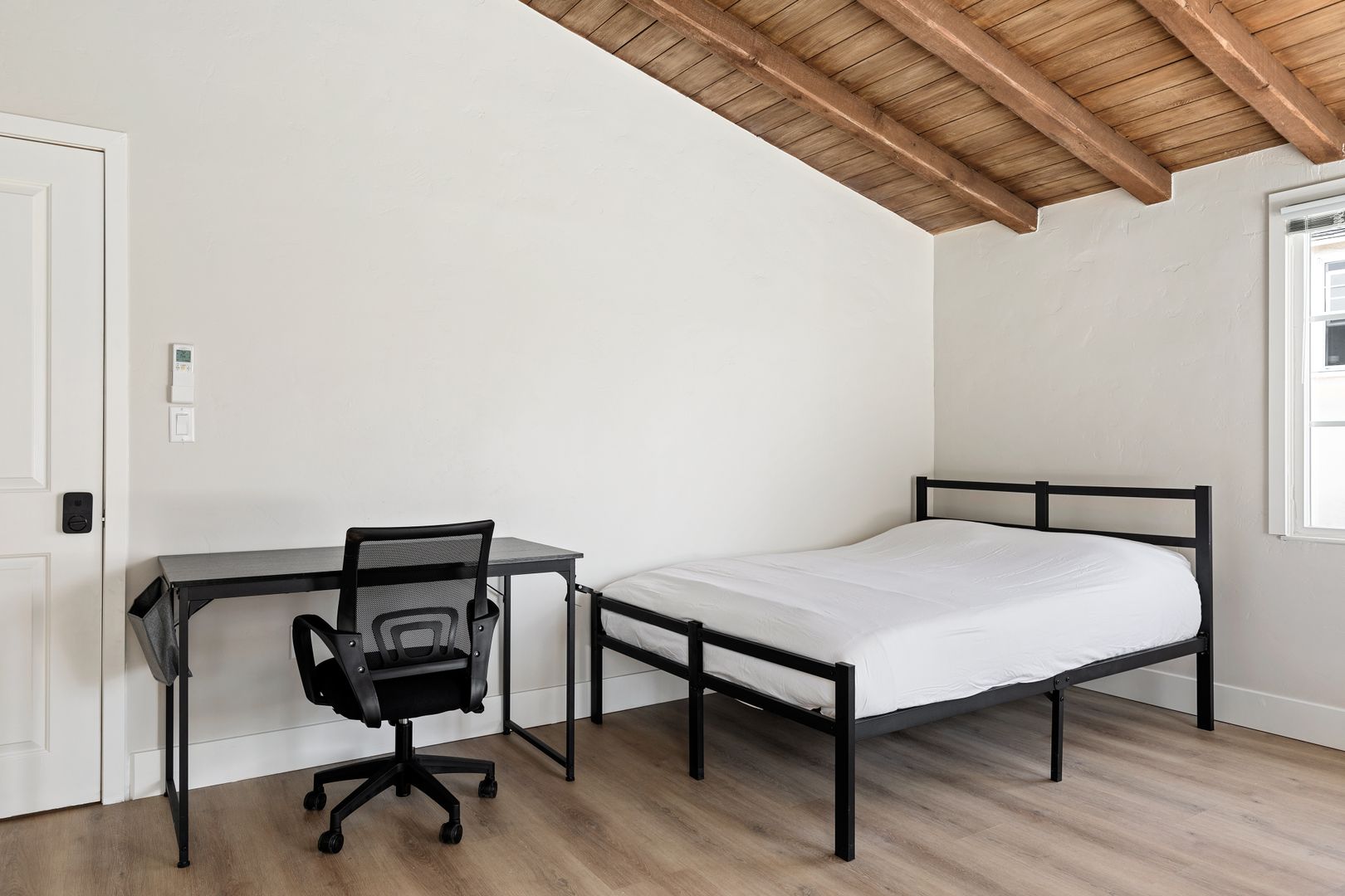 • Includes a full size bed, desk and closet.
