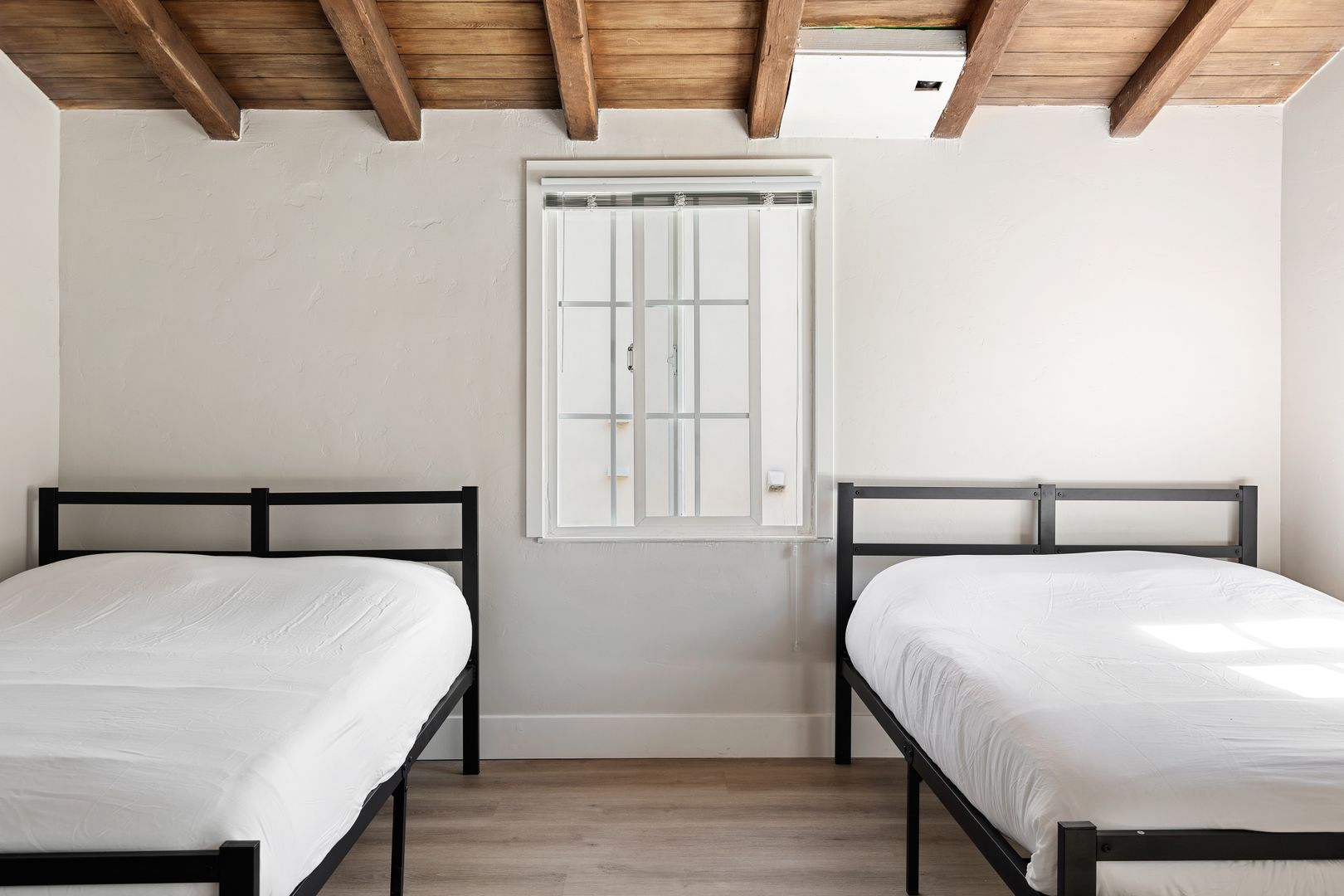 • A 189 sq ft twin/shared room with wood flooring and a common ensuite bathroom.