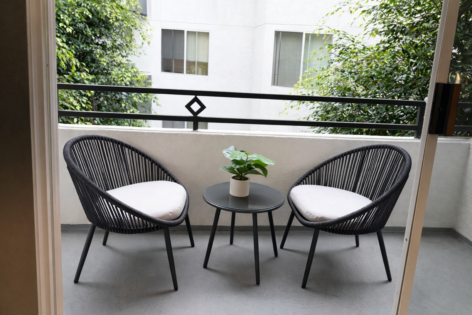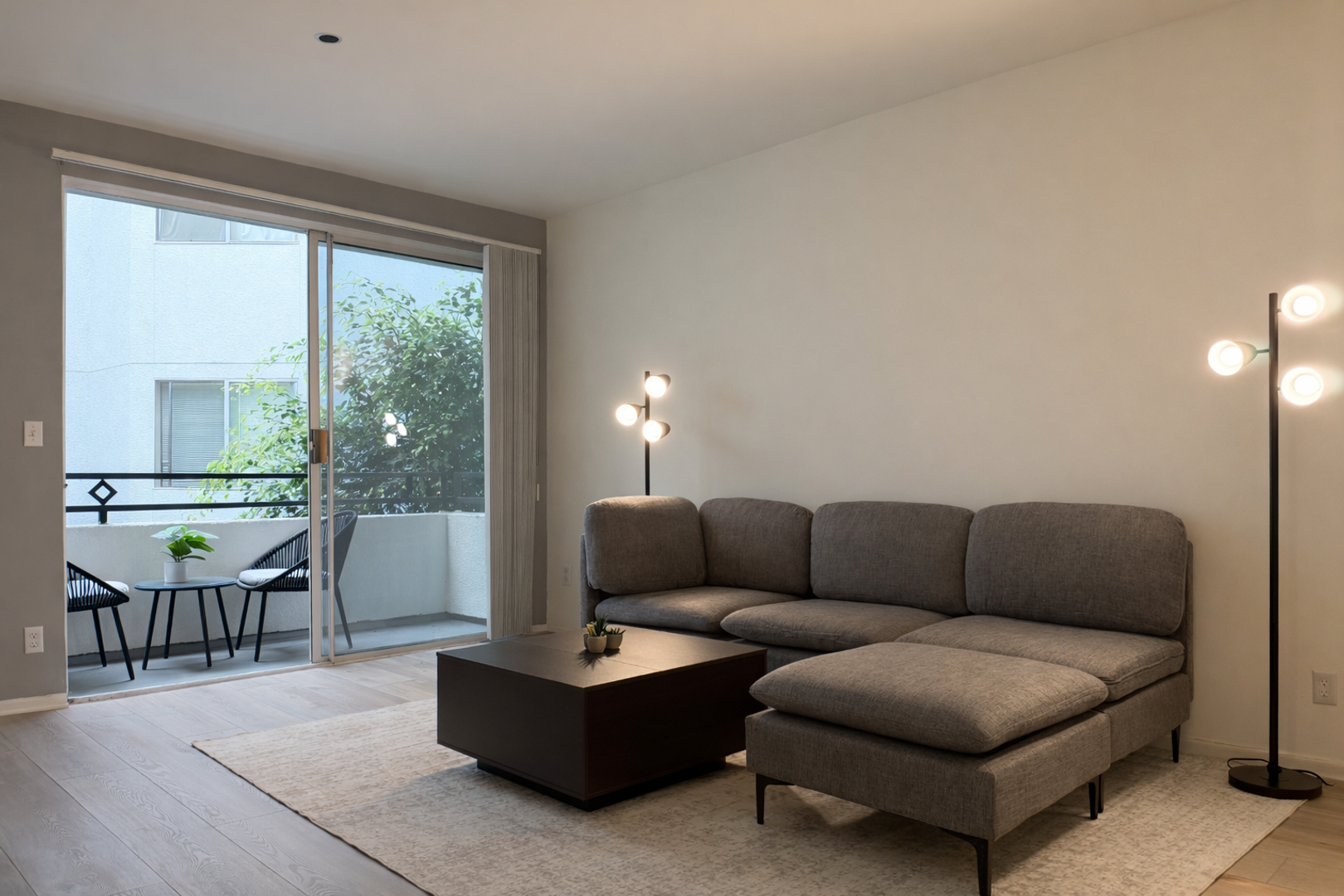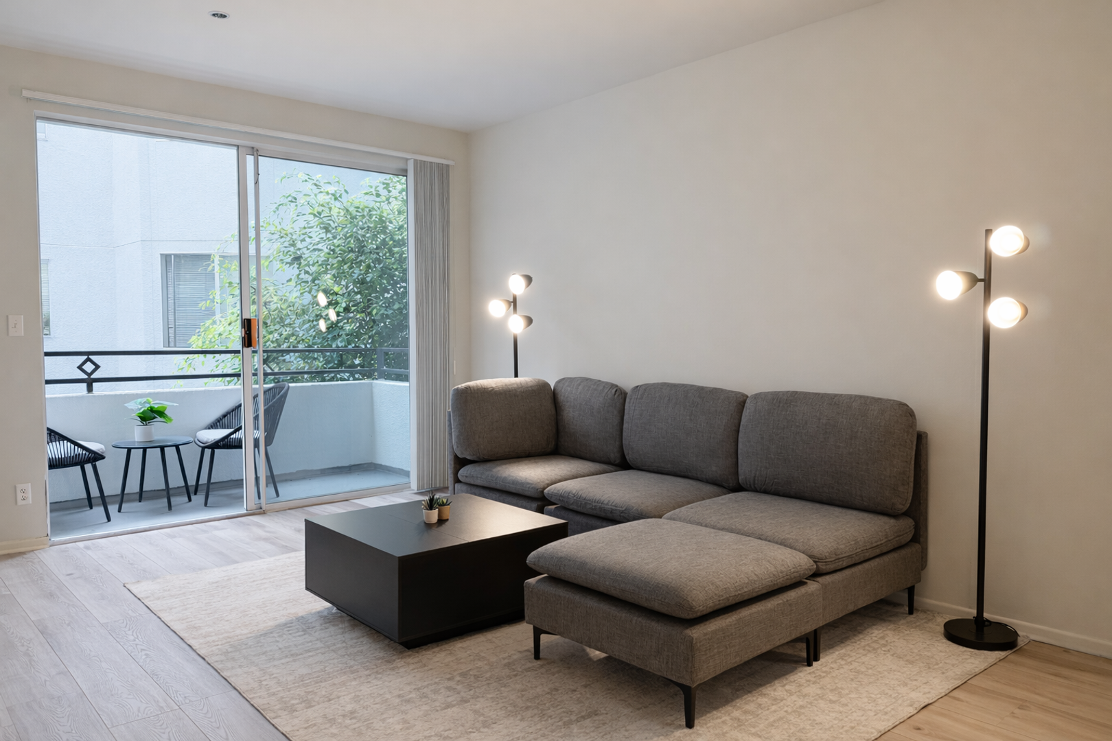 • It's a fully furnished 2 bedroom, 2 bathroom apartment with a spacious living room and balcony as common areas.
