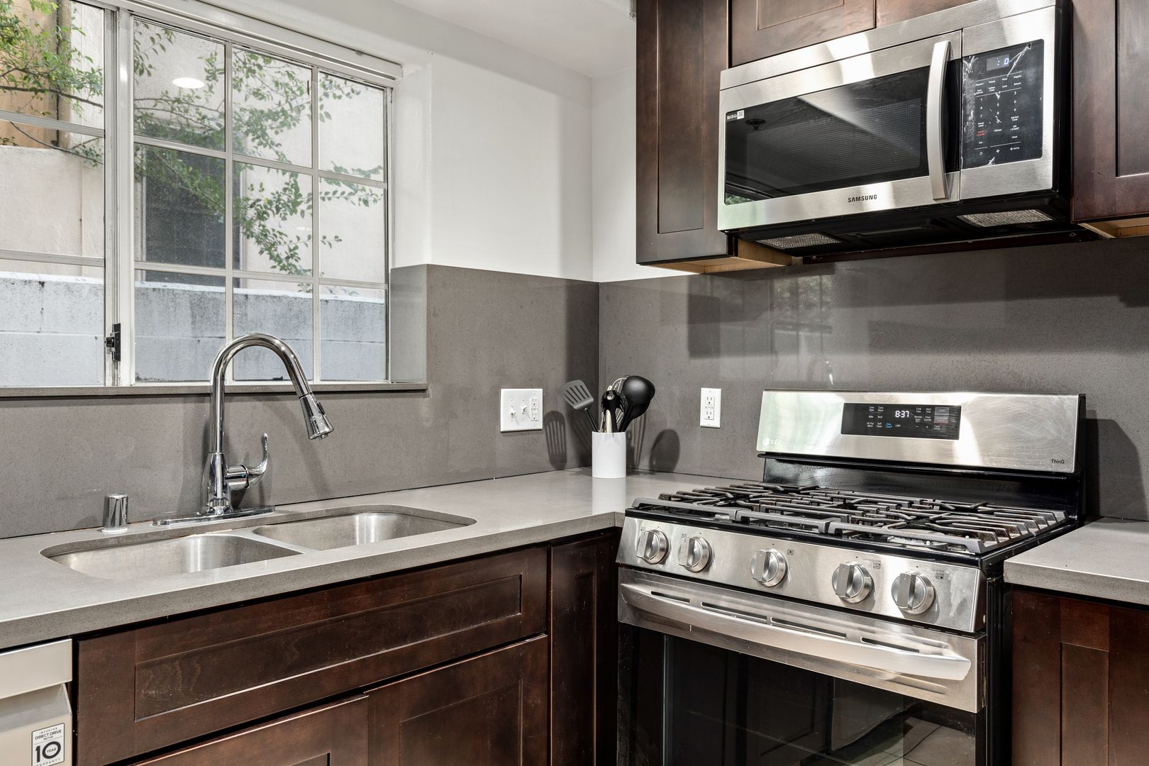• Has a fully functional kitchen with refrigerator, stove top, and oven provided for your convenience.