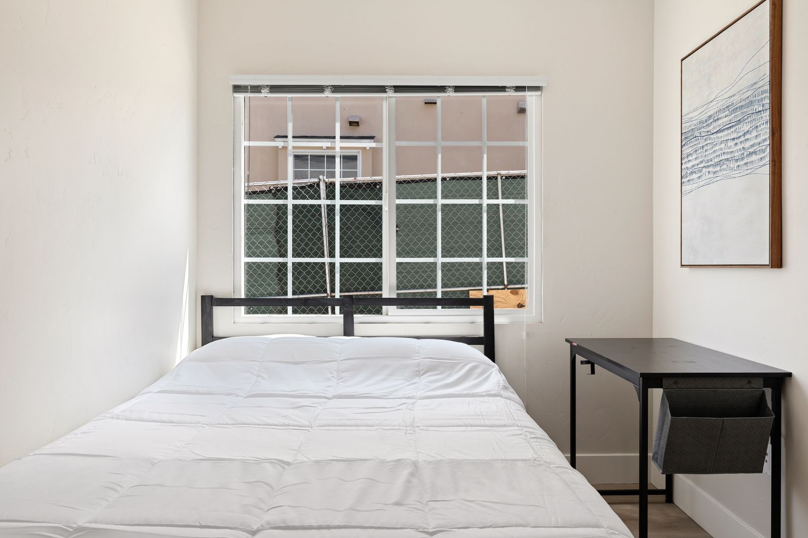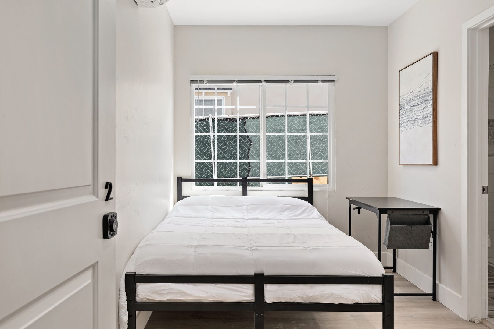 • Includes a full size bed, desk and closet.