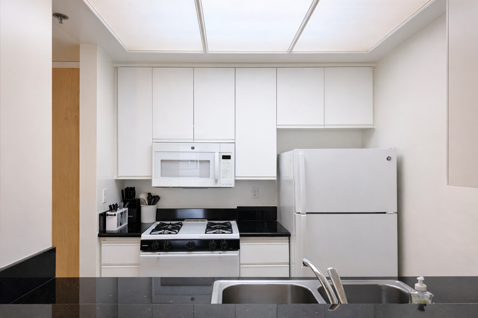 • Has a fully functional kitchen with refrigerator, stovetop, and oven provided for your convenience.